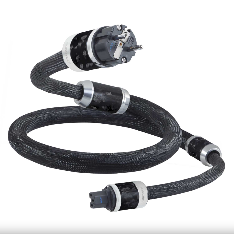 – Alpha DUCC Ultra Crystallized High Purity Copper.All audiophiles search for the same qualities: Verisimilitude to the original event, a sense of engagement promoting suspension of disbelief, a visceral immersion in the audio video experience. They also know that everything in the signal path makes a difference, and that which we see, hear and experience is, in a very direct way the AC power itself.In fact, the AC supply is directly in the signal path. As amplifiers transfer energy to speakers it draws down storage capacitors by exactly the same amount. The capacitors try to keep fully charged by drawing energy from rectifiers that turn the AC into DC from the transformer that draws power through the wall. Ultimately everything you see, hear and experience is the AC that must be identical to let’s say an amplifier’s output, and that AC travels through the power cord! That’s why they’re as important as any cable in a system because they carry the same signal. Furutech has received enthusiastic reports of significant improvements with every type of audio, video and display device.The Project V1 power cord features special connectors, exclusive to this power cord: an IEC connector, male AC connector and Cable Damping rings that incorporate Furutech’s special antistatic and antiresonance NCF material combined with special high-grade nylon insulation. The housings of these special connectors and Damping Rings are formed with 4-layer hybrid NCF carbon fiber finished with a special hardened clear damping coating.