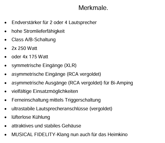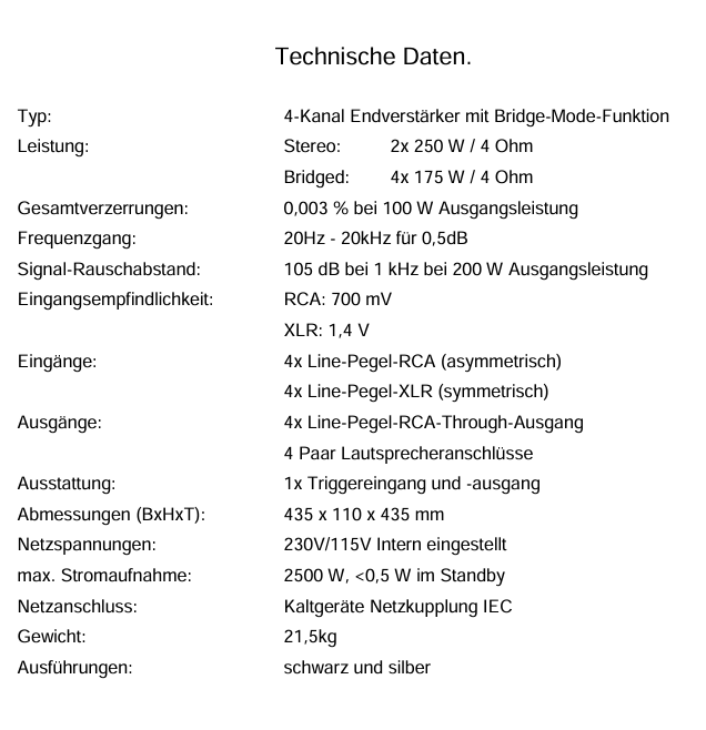 Der M6xi250.4/2 ist der Multikanal-Endverstärker. Mit ihm können nun auch Filmliebhaber die vollendete Klanqualität von Verstärkern aus dem Hause MUSICAL FIDELITY in vollen Zügen genießen. MUSICAL FIDELITY setzt auch bei seinen neuen Heimkinoprodukten auf Tradition und Kontinuität. Daher ist selbstverständlich auch der M6xi250.4/2 in der für das Haus typischen Class-A/B-Technik konzipiert. Moderne Taktverstärker beeindrucken ja meist nur auf dem Datenblatt – aber so gut wie nie den audiophilen Kenner. Neben einem audiophilen Netzteil, das aus dem Vollen schöpft und vier diskret und identisch aufgebauten, aber auch brückbaren Verstärkerkanälen bietet der M6xi250.4/2 eine sehr umfangreiche Ausstattung, die sowohl eine sehr komfortable Bedienung als auch äußerst vielfältige Anschlusskonfigurationen ermöglicht.