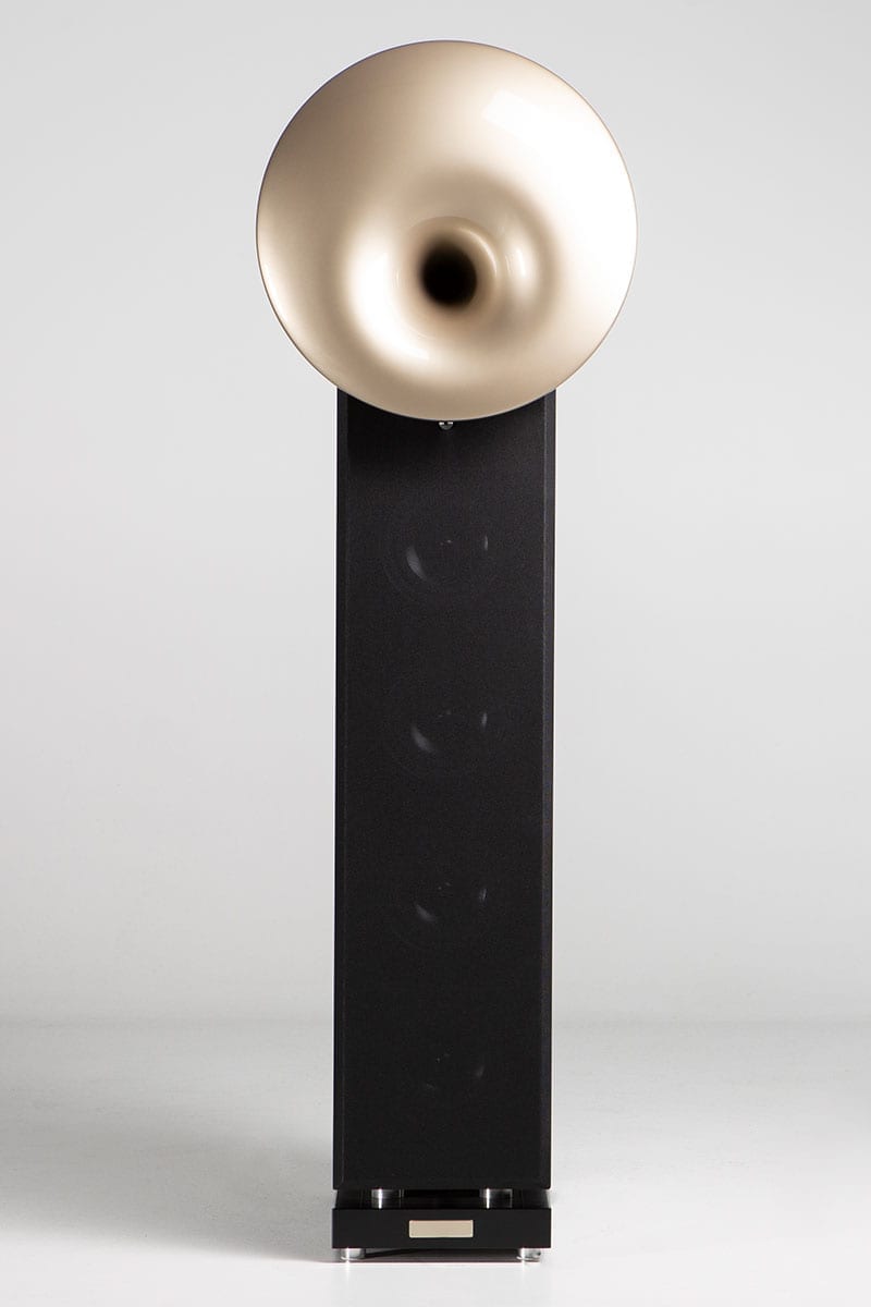 Ihr hypersphärisches Horn überträgt volle 4 Oktaven, gegenüber der für Hörner üblichen 3. Dadurch spielt der gesamte Mittel- und Hochtonbereich mühelos, schnell und präzise. Die Arbeit im Tieftonbereich übernehmen 4 parallel geschaltete Basschassis, die durch eine intelligente Ankopplung wie ein einziges großes funktionieren.