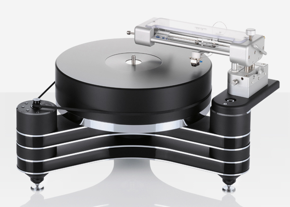 Um die Drehzahl stets konstant zu halten, wurde die innovative Motorsteuerung mit der sensorbasierten Regelelektronik OSC (Optical Speed Control) ausgestattet. Damit erreicht clearaudio Gleichlaufwerte, wie sie bis dato weltweit nur von Plattenschneidemaschinen erreicht wurden – eine Grundvoraussetzung für optimale Wiedergabe. In Verbindung mit dem hohen Drehmoment des hier eingesetzten Gleichstrommotors wird eine felsenfeste Ruhe des Klangbildes erreicht – so souverän klingt qualitativ ausgereifte Ingenieurskunst. Der gesamt 85 Millimeter starke Plattenteller aus hochverdichtetem 70mm Kunststoff und einem 15 Millimeter starken Edelstahl-Schwungteller ruht auf einem CMB-Keramik-Magnetlager, das von clearaudio entwickelt und patentiert wurde. Die Wahl der Umdrehungsgeschwindigkeit erfolgt ganz bequem auf Knopfdruck. Zudem besteht die Möglichkeit, einen zweiten Tonarm zu installieren.