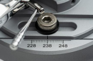 Auch der Tonarm des M8xTT geht denselben konsequenten Weg wie schon das Laufwerk. Ein Tonarm in 10 Zoll Länge (effektive Tonarmlänge 254 mm) ist prinzipbedingt in der Lage die Schallplatte perfekter auszulesen als die verbreiteten 9-Zoll-Designs. Dies aus mehreren Gründen. So ist der Abtastwinkel der Nadel zur Rille optimaler und die zusätzliche Masse erlaubt dem Tonarm den Tonabnehmer noch souveräner zu führen, was dessen Performance entscheidend verbessert, da nun alle Energie der Plattenrille im Generator des Tonabnehmers ankommt. Das Tonarmrohr in poliertem Aluminium ist konisch geformt und verjüngt sich zur Headshell hin konstant. Dies bringt das Masse/Steifigkeitsverhäl tnis auf den idealen Punkt. Selbstverständlich überlässt MUSICAL FIDELITY die Justage des Tonabnehmers nicht dem Zufall und erlaubt die perfekte Einstellung in allen geometrischen Belangen: Kröpfung, Überhang, VTA und Azimut. So können Sie absolut sicher die beste musikalische Performance aus Ihrem Tonab nehmer an den Tag fördern. Im Lieferumfang befinden sich zudem zwei Gegen gewichte um Tonabnehmer zwischen 6 und 20 g Eigengewicht perfekt ausbalancieren zu können. Die hochpräzisen Tonarmlager werden in einem geschlossenen Acryl-Ring geführt. Die Steifigkeit im Verhältnis zum perfekten Dämpfungsverhalten macht an dieser hochsensiblen Stelle Acryl zum perfekten Material. Außerdem wird serienmäßig eine zweite Tonarm basis mitgeliefert, um auch andere Tonarme mont ieren zu können. Dabei erlaubt der präzise skalierte Führungs schlitten Kombinationen ebenso außerhalb der gängigen Bemaßungen.