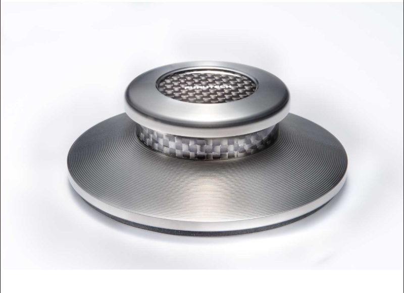 The beautifully finished precision machined nonmagnetic stainless steel base and top modules are girdled by a layer of damping carbon fiber. The bottom surface is covered with 16 concentric cushioning grooves made of an extremely effective Piezo Electric damping material.
