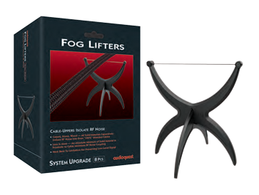Fog Lifters Platzieren Sie FogLifter unter Audio- und Netzkabel, um die Einkopplung von HF-Störungen erheblich zu reduzieren – unabhängig davon, ob diese vom Boden kommen oder daraus resultieren, dass Kabel mit Ständern oder Klemmen isoliert werden, die selbst eine zu große Masse aufweisen und HF-Störungen verursachen